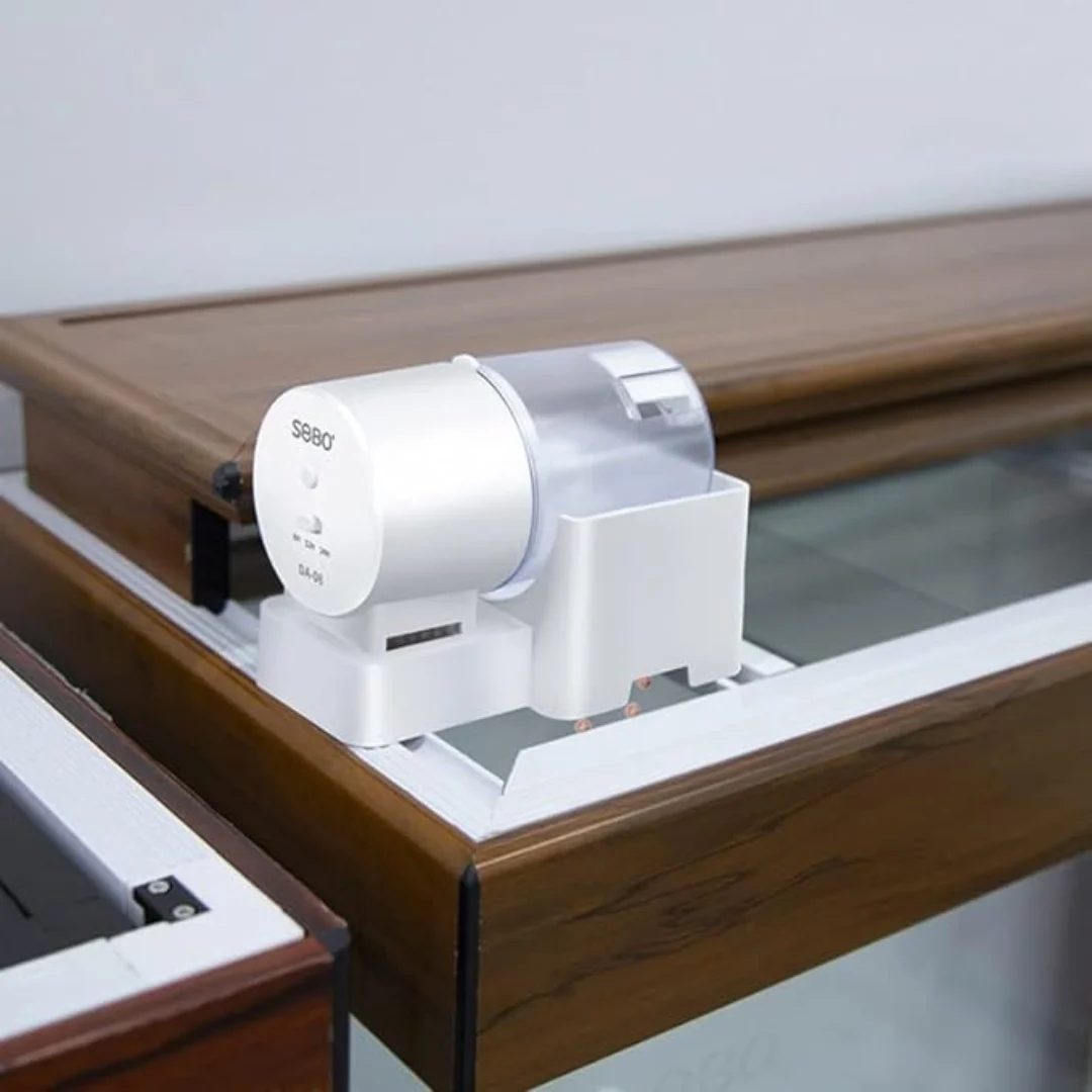 Keep your KSH STORE well-fed with the SOBO Automatic Fish Feeder DA-08, a reliable solution for consistent fish feeding. This premium white feeder, measuring 13 x 10 cm, 60 G and 100G FEEDER offers convenient programmable feeding schedules at 8 -HOUR,12-hour or 24-hour intervals. The transparent food container lets you monitor feed levels easily, while the adjustable dispensing mechanism helps control portion sizes for different types of fish food including flakes, pellets, and granules. Powered by 2 AA batteries (not included), this feeder features both manual and automatic feeding modes for maximum flexibility. Installation is straightforward – simply attach it to your fish tank cover using the provided mounting system and double-sided adhesive tape. The feeder’s upward-facing barrel design ensures proper food distribution while maintaining optimal feed levels. Perfect for busy fish enthusiasts or during holidays, this automatic feeder helps maintain regular feeding routines for healthier aquarium inhabitants. The durable construction and practical design make it a reliable addition to any aquarium setup.