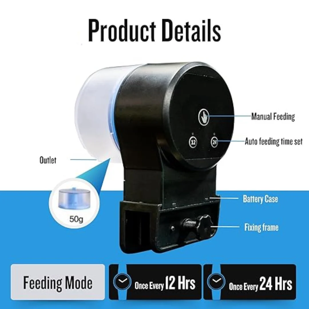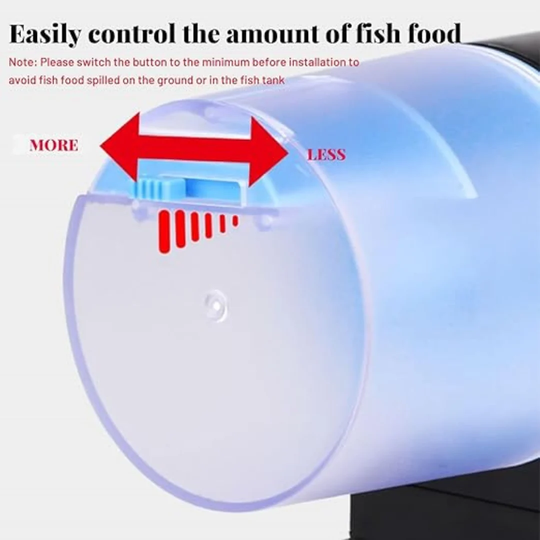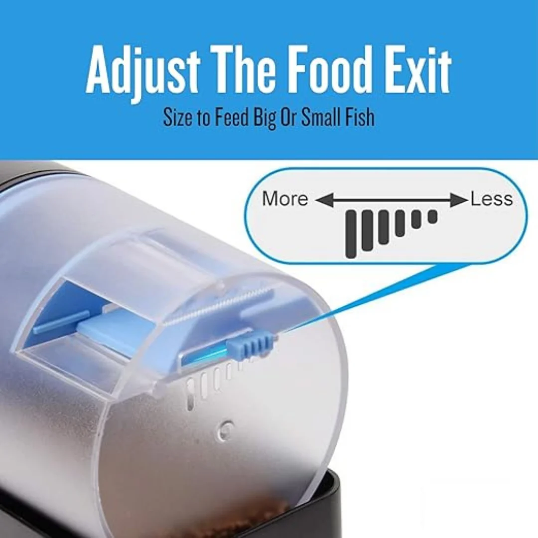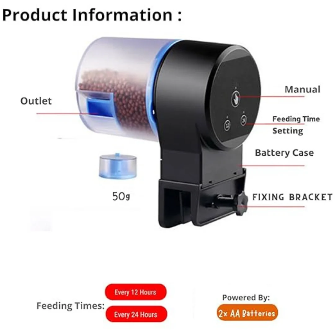 Automated Feeding: This auto feeder ensures your fish are fed on a consistent schedule, dispensing the right amount of food at pre-set times.