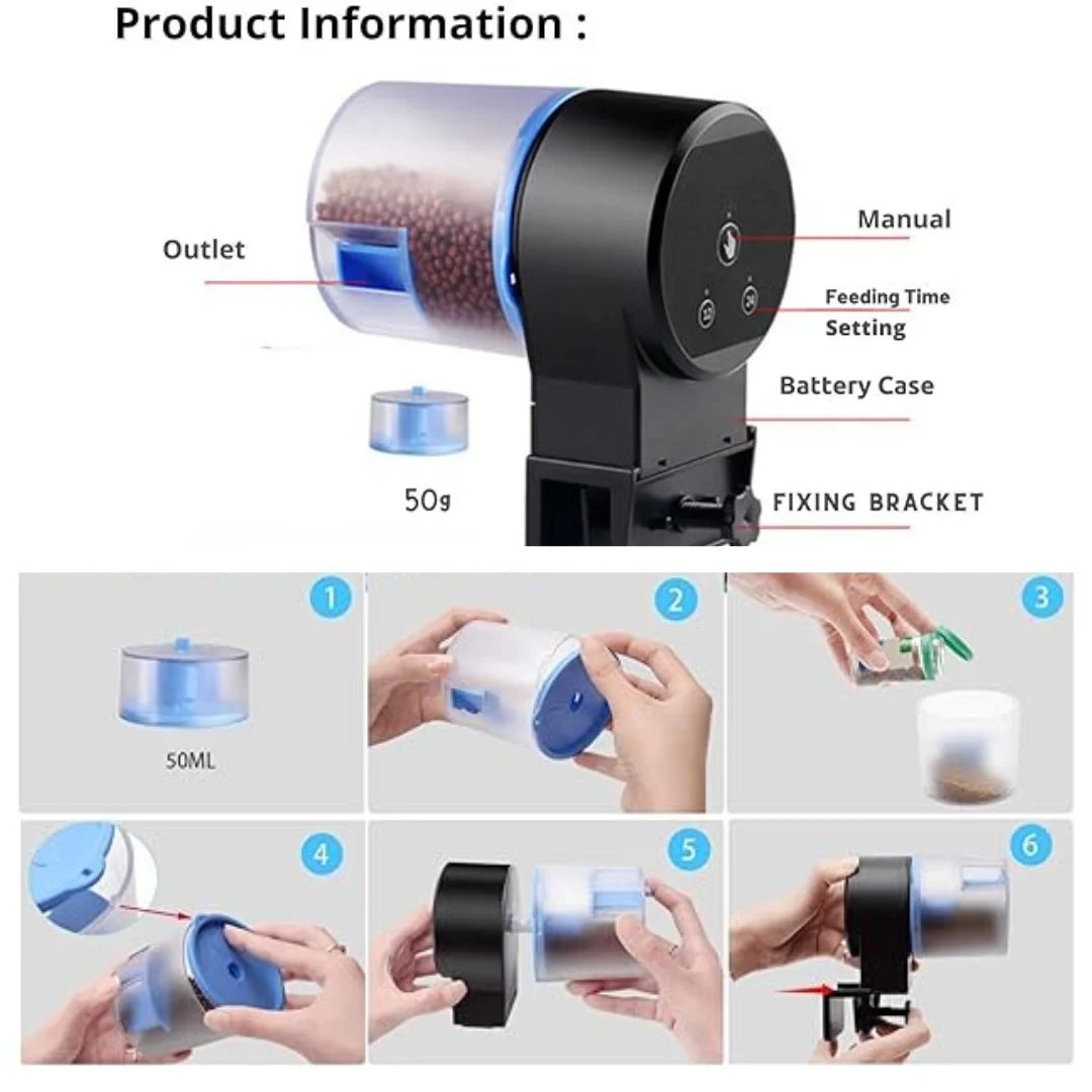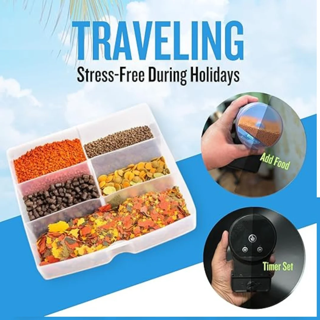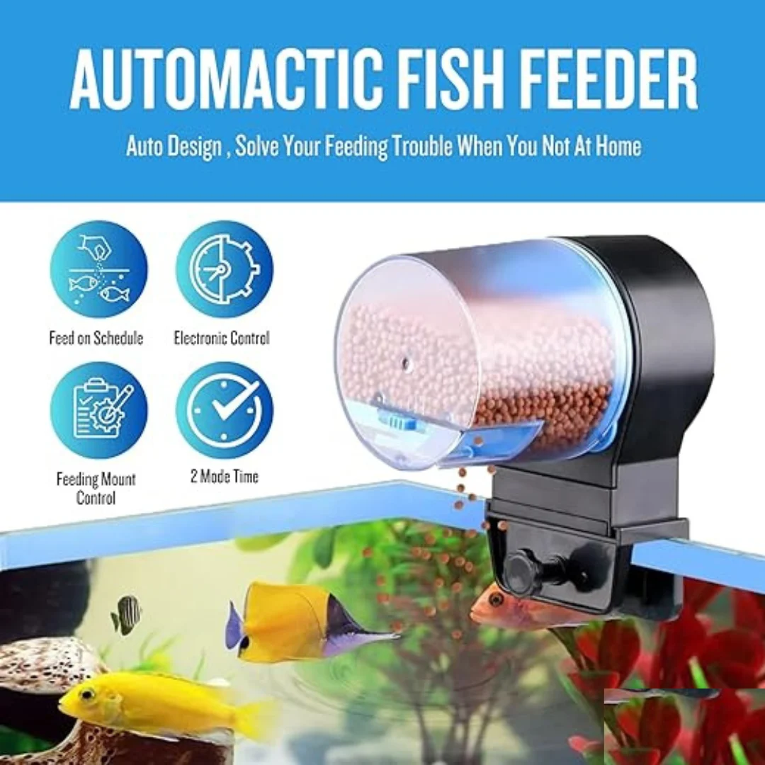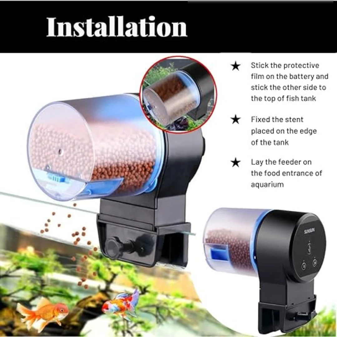Automated Feeding: This auto feeder ensures your fish are fed on a consistent schedule, dispensing the right amount of food at pre-set times.
