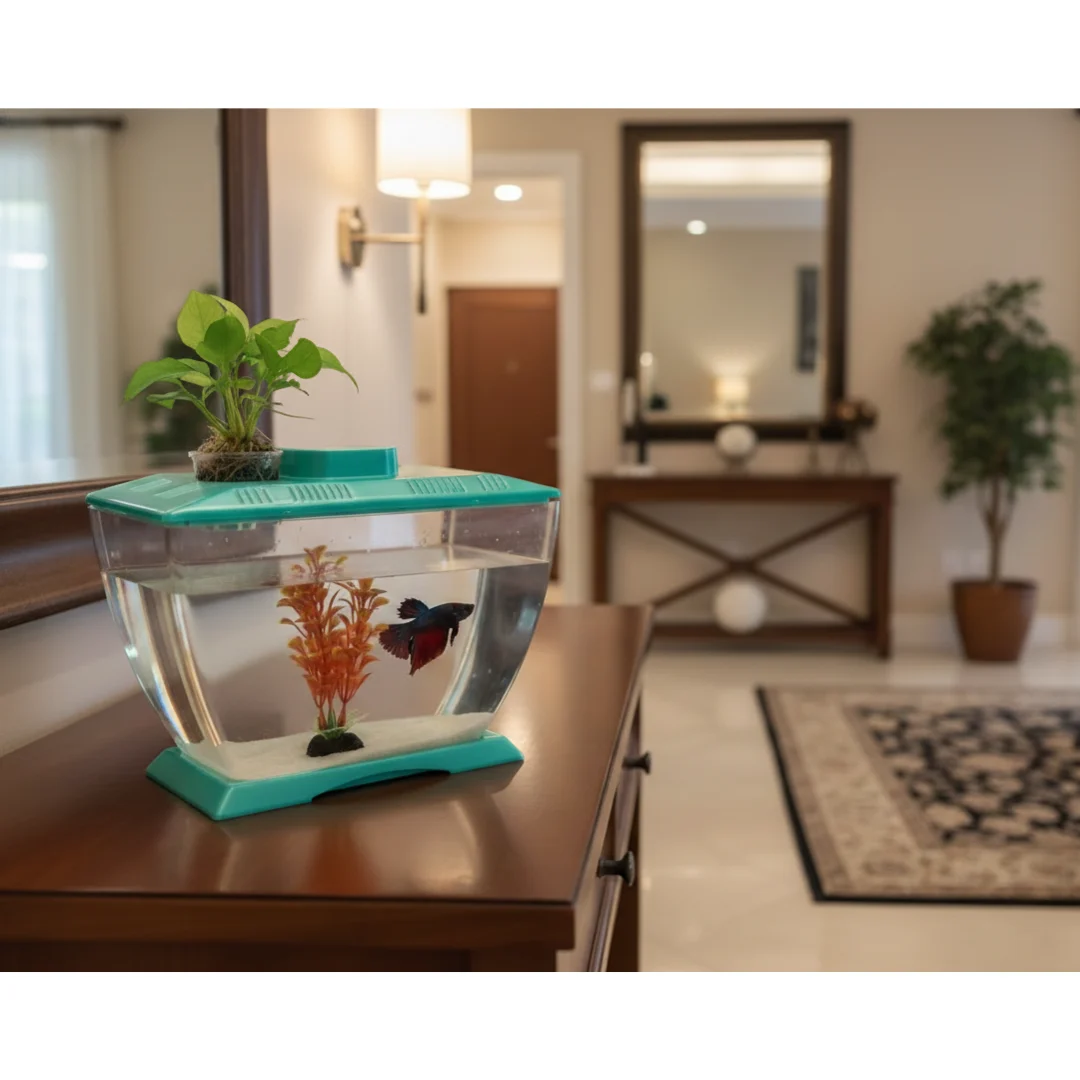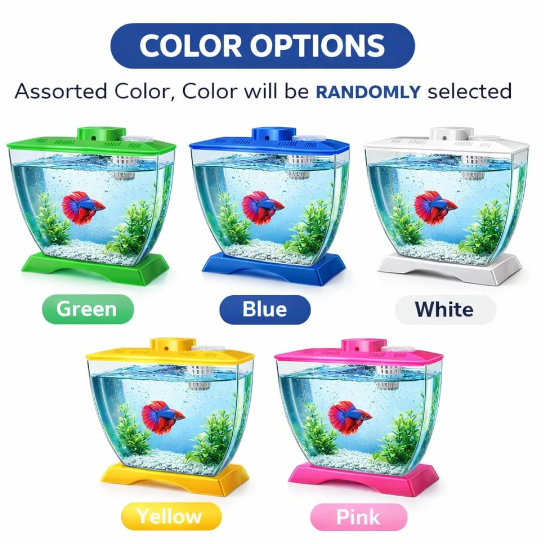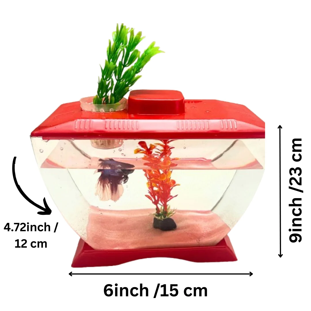 This charming mini acrylic betta fish tank brings aquatic life to your desktop, study table, or office space with style and simplicity. Measuring 22 × 12 × 15 cm, this compact aquarium is perfectly sized for betta fish and other small aquatic pets, providing them with a comfortable and secure habitat. Crafted from durable, unbreakable acrylic material, it offers crystal-clear visibility whilst being significantly safer than traditional glass tanks, making it an excellent choice for homes with children. The tank features a unique built-in plant pot holder on top, allowing you to cultivate money plants or other indoor water plants, seamlessly blending nature with your living space. Designed with beginners in mind, this aquarium is incredibly easy to set up and maintain, requiring no complex equipment or technical knowledge. Its smooth, rounded edges and lightweight construction ensure it’s safe for kids to handle and enjoy. The cost-effective design makes it an affordable entry point into fishkeeping without compromising on quality or aesthetics. Available in assorted colours that will be randomly selected, each tank adds a vibrant pop of colour to any room. Whether you’re starting your first aquarium or looking for a thoughtful gift for family and friends, this mini acrylic betta tank combines functionality, safety, and visual appeal in one delightful package.
