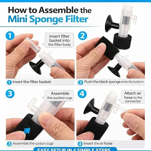 - EASY ASSEMBLY AND MAINTENANCE: Fully detachable parts including filter basket, sponge, suction cup, and air stone connector allow for quick installation in 4 simple steps and effortless cleaning or sponge replacement