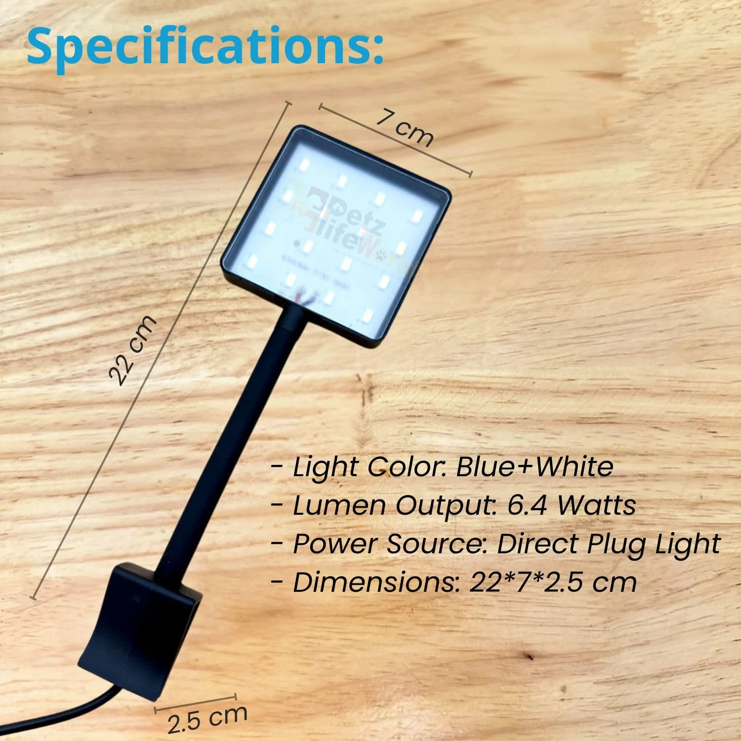 - DIMENSIONS AND SPECIFICATIONS: Measures 22 x 7 x 2.5 centimetres with a square-shaped light head (7 centimetres), lightweight black design perfect for 1.5 feet tanks, fishbowls, and shrimp tanks.